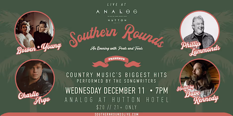 An unforgettable night of raw voices, real stories, and the magic behind the music. Join us as five masterful songwriters share the heartbeats behind every lyric.